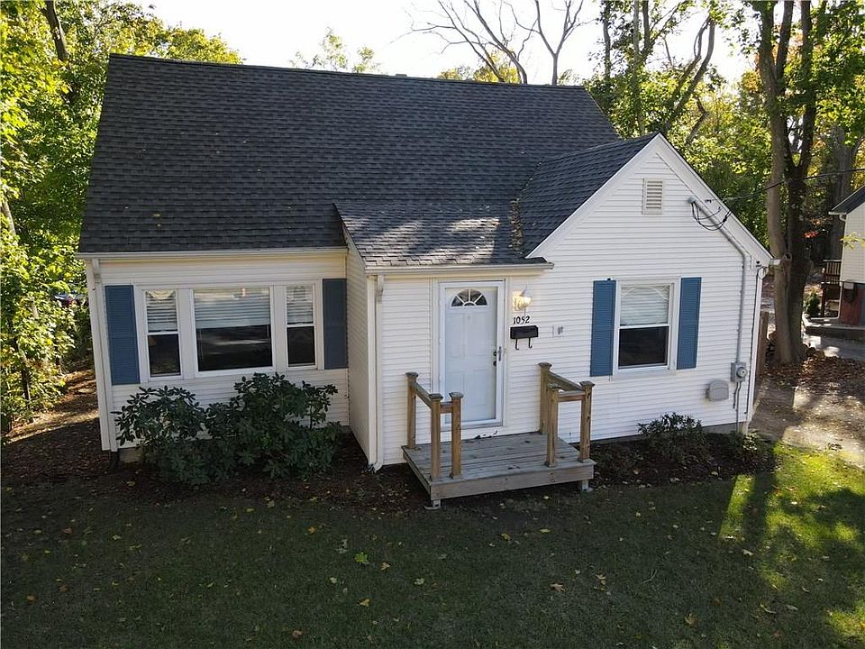 Newly Updated 4 bedroom, 1 bath MOVE IN ready Cape with a Large fenced backyard on .3 acre lot close to everything. Beautiful hardwood floors throughout home, granite counter kitchen with stainless appliances, Full dining room, Living room, 2 bedrooms on 1st floor w/fulll tiled bath, 2 large bedrooms with built ins on 2nd floor. Full basement for laundry, storage, utilities & expansion possible with walkout basement. Insulated windows, vinyl siding, newer Architectural shingled roof, connected sewer & town water, oil heat (Gas in street), 100 Amp electrical service, New deck, large outbuilding, sprinklers in lawn as an added bonus. Expansion possible. Great buy!