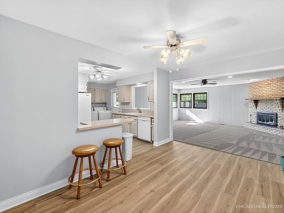 Welcome to your meticulously maintained Mediterranean Ranch in desirable Elk Grove Village. This spacious 3-bedroom, 2-bath home offers approximately 1,600 sq. ft. of living space, including an added family room with a fireplace. Interior has been freshly painted and newly carpeted throughout. The kitchen, dining area, and hallway feature luxury vinyl plank flooring for a modern, durable finish. Convenient single-level living with a comfortable and functional layout. Enjoy a friendly neighborhood atmosphere, parks nearby, and highly rated schools in Districts 59 and 214. Move-in ready and well cared for, this home offers both comfort and value in a prime location. Come see this beauty today!