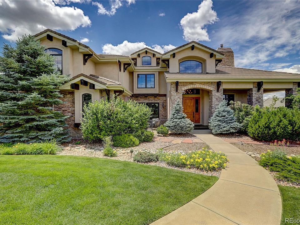 Fabulous custom estate perfectly positioned on a .61 acre site featuring spectacular panoramic views of the Colorado Mountains. This executive home boasts quality finishes and a floorplan designed for comfort living, lavish entertaining and intimate gatherings. A vaulted foyer with curved staircase welcomes you in. The cozy living room has a double sided fireplace and room for the baby grand. There is a formal dining room with french doors leading out to the front patio. An exquisite kitchen offers everything a discriminating chef could want, including abundant cherry cabinetry, slab granite counters, large island with vegetable sink, Wolff 36" duel fuel self cleaning range, 42" built-in refrigerator, two Bosch dishwashers, Dacor oven, warming drawer, wine cooler, built-in planning desk and true butler's pantry. The adjacent breakfast area is bright with light from windows overlooking the massive outdoor living space. The two story family room is complimented by a large stone fireplace, built-in entertainment center and picture windows. Cherry woodwork, built-in bookshelves and a cozy fireplace make study a restful place. There is a large laundry room/mud room, half bath and guest bath on this floor. The upper master suite is luxurious w/private balcony, double sided fireplace into adjoining master bath with a glassblock wall, custom tile and jacuzzi tub. Three additional bedrooms, each with their own full or 3/4 bath, a loft/study area and a separate laundry room complete the upper level. The fantastic lower walkout level has a large recreation room including a full bar, game area, wine room, and a theater room with built in seating, There is a second master suite on this level with a full bath and enormous walk in closet. The stunning exterior landscape, multiple decks and heated pool with 2 cedar cabanas are designed for fabulous outdoor living. An added bonus is the oversized 4 car garage with two separate garage door openers and built-ins for storage.