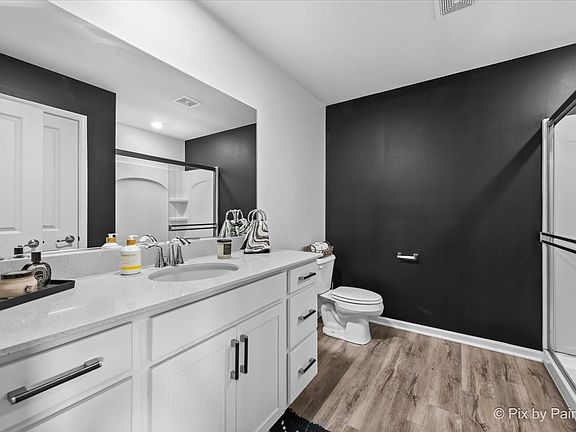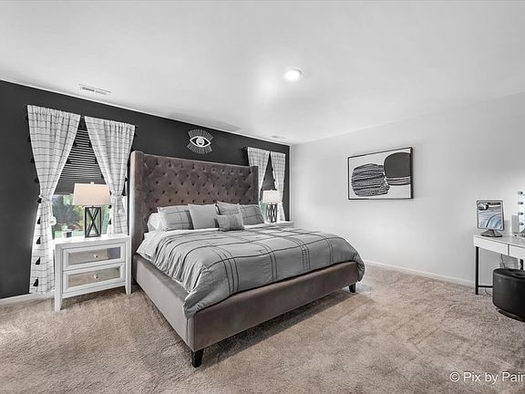 Welcome to this gorgeous newer home in the highly desirable Park Pointe subdivision, perfectly situated near expressways, the Fox River, shopping, and a variety of restaurants for everyday convenience. Step inside to discover an inviting open-concept design where the eat-in kitchen shines with 42" white cabinetry topped with crown molding, gleaming quartz countertops, a walk-in pantry, undermount sink, and stainless steel appliances. The kitchen seamlessly flows into the spacious family room, creating the perfect space for both entertaining and everyday living. A stylish dining area with a designer accent wall and sliding glass doors opens to the backyard, extending your living space outdoors. Beautiful vinyl plank flooring runs throughout the main level, as well as the bathrooms and laundry room, which is thoughtfully located on the second floor for ease and convenience. Upstairs, the spacious primary suite features a private bath with a shower and linen closet, while the second bedroom is impressively large-a rare find that offers versatility for guests, office, or hobbies. The home is tastefully painted and decorated, with a custom TV wall stand included. Modern living is elevated with built-in Smart Home Automation technology, offering remote access to the thermostat, keyless touch entry, and a video doorbell for peace of mind. Stylish, move-in ready, and ideally located-this home truly has it all.