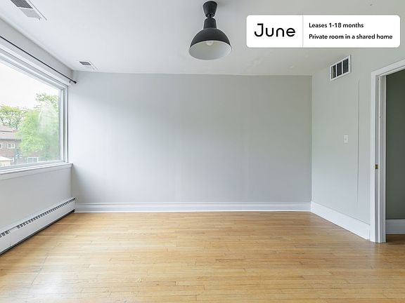 This Queen room in Noble Square is available on a 12 month lease or a flexible short term (31 to 364 days) lease. You pick your custom start and end date. Monthly rent rate is determined by furnishing preference, move-in date and move-out date. Speak to a June representative for recommendations on the best stay duration for the lowest rate.