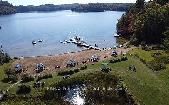 Exceptional and affordable family vacation gateway. Enyoy 5 weeks of fractional ownership including one prime fixed week every July and 4 floating weeks throughout the year. This spacious 3- bedroom, 2 bath, fully winterixed cottage offers post card-perfect lake views, as being a "first row cottage" there are no other cottages blocking the view. Also offers a large lakeside deck, a bright Muskoka room and a cozy stone fireplace. This cottage comes fully furnished and equipped for comfort and convenience. Blue Water Acres features outstanding amenities such as an indoor heated swimming pool, hot tub, excersise room, games room, owners launge, several outdoor tennis/ pickleball courts, playgroung and a superb sand beach with docking facilities. Canoes, kayaks are available for use at the beach. This resort community also offers winter ice skating, snow tubing/ sledding and endless walking trails in the woods. With all these outstanding year round facilities it is guaranteed , no one in the family ever will be bored spending time here. Also close by you can enjoy downhill skiing, golfing, snowmobiling, fine dining. The town of Huntsville is within 15 minutes drive for convenience. Resort fees include all utilities, maintenance, internet, TV. All you need to do is to show up and enjoy.