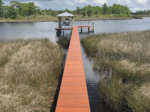 This 2,957 square foot craftsman architectural style single family home has 4 bedrooms, 3 bathrooms, and a 4 car garage. It is situated on a spacious 1.9 acre treed lot in the prestigious Riverside Ridge community. This home sits atop a 13 foot high bluff that backs up to the Anclote River and has easy Gulf Access. It is located at 1052 Riverside Ridge Rd, Tarpon Springs, FL 34688. The house was structurally overbuilt, by an engineer-for an engineer, giving piece of mind during the frequent Florida storms. It also features impact windows and heavy insulation making this house very energy efficient. Hang out on the porch by the stone-framed outdoor fireplace overlooking the pool and hot tub while grilling from your outdoor kitchen, all the while taking in the views of the river. Inside you will feel the immediate character given by the distinctive wide plank heart pine flooring reclaimed from a centuries-old building. The open floorplan kitchen/living area with 22 foot high ceilings is a gathering space for family and friends. The kitchen has a center working island surrounded by expertly arranged granite countertop food prep space and professional grade appliances. A focal point ceiling in the living area makes a statement with the exposed trusses, hand-cut and finished from native Florida Cypress wood. A wall of windows lining the kitchen and living area faces north bringing in abundant light and expansive views of an old Florida river scene.