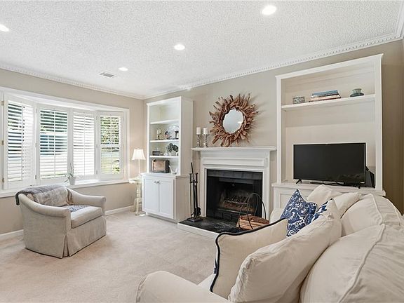 Charming End-Unit Townhome Near Historic Roswell. This beautifully maintained end-unit townhome offers effortless functionality and comfortable living. The open-concept layout connects the living room, dining area, and kitchen, creating a perfect flow for everyday living and entertaining. Step outside to the back deck overlooking a private wooded view. The primary suite on the main level features a renovated bath with a walk-in shower, custom tile, and stylish vanity, plus a spacious walk-in closet. The inviting living area includes a fireplace with built-in bookcases, Two laundry areas - stackable on main level and laundry in hall on the upper level. Two designated parking spaces. Must see this friendly, coveted community, with only 34 units, nestled in the heart of Roswell with pool, fitness center and clubhouse. HOA includes water. Walking distance to everything Canton St has to offer - shopping, restaurants, festivals, parks!