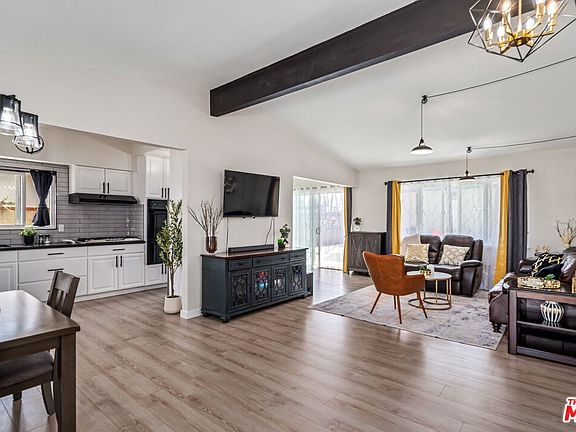 Amazing pool and a beautifully renovated modern single-story home offering nearly 1,100 sq. ft. of stylish living space! This move-in-ready gem features a bright all-white kitchen with modern hardware, a decorative backsplash, rich dark granite countertops, and a functional center island. Throughout the home, you'll find fresh modern paint, laminate wood flooring, and a striking dark wood ceiling beam that adds charm and character. Both bathrooms are upgraded with tile flooring, and the primary bath boasts a sleek barn-door entry and a fully tiled walk-in shower. Step outside to your private pool, perfect for summer relaxation or entertaining. Conveniently located within distance to major shopping, restaurants, parks, and entertainment, this rare find offers the perfect blend of comfort, style, and location. Call today to schedule your private showing!