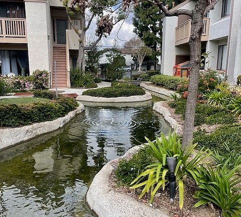 This is a desirable Lower unit condo which is located in the Lakeside Community of Garden Grove. There is Beautiful , well maintained landscaping including meandering streams and waterfalls throughout the complex. This gated and secured property has a convenient pathway to a nearby full size carport# 38 which serves this condo. This condo comes with abundant closet and cabinet storage space , which includes both inside the unit as well as two storage closets outside of the condo- one of which is right next to the front door, as well as one located on the back patio. This home includes Smart home internet system , including smart lighting , curtains , Thermostat and fan controls. The Kitchen is stunning with Cherry wood Kitchen cabinets and quartz counter tops. The Kitchen also includes a large Refrigerator with filtered water and ice maker, dishwasher and microwave and an abundance of storage/Cabinet space. There is a high Efficiency Central Furnace and A/C both installed in 2021. The water heater was replaced in 2022. In addtition this condo includes a large Capacity LG washer/Dryer conveniently located in a closet near the kitchen . The Lakeside community has 2 pools /Spas and sauna and is located within close proximity to shopping, restaurants , schools and Freeways.