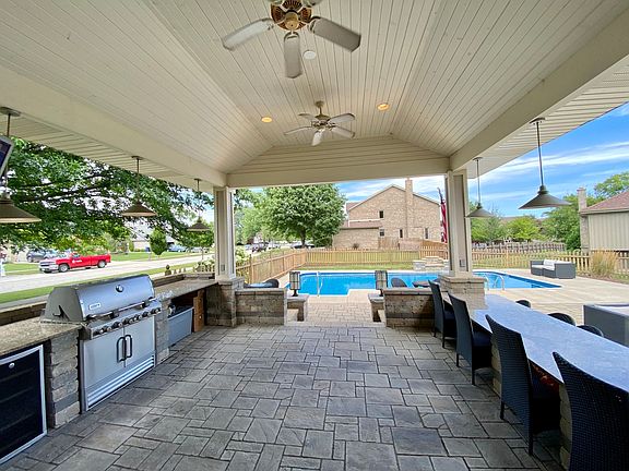 OUTSTANDING ultra Modified Home in Emerald Estates!! Vacation like home with a paradise setting. Large inground pool, covered patio with granite bar and grilling area and huge circular gas firepit. Welcome home to a unique and upgraded home unlike many others! Enter in to a warm and welcoming foyer that greets you to the formal living room with vaulted ceilings and gleaming hardwood flooring that carries throughout the main level. Continue to the beautifully remodeled eat-in vaulted kitchen that showcases 2 large islands with breakfast bars, granite counter tops throughout, porcelain tile back splash, double JennAir oven, Wolf high end cooktop, and bonus preparation sink under 3 skylights and tons of lighting! A large family room with hard wood floors and gas fireplace with lava rocks leads to the backyard! Covered patio with vaulted and painted wood lined ceiling fully covers a big part of the patio that boasts a perfect entertaining space with granite counters, attached gas grill, wine fridge, and TV setup that all stay. Relax by the brick paver gas firepit with seating wall. Master bedroom offers a big walk-in closet with custom Built in shelving and dedicated master bath. Current master bedroom setup has washer & dryer installed in the room, but can be easily relocated back to the mud room on the main level. A full basement with a deep pour has tons of extra living space or storage space with a sauna that stays! Nest thermostat, 2nd fridge in garage stays, workout equipment stays, main level and upstairs freshly painted, NEW sump pump & ejector pump, and so much more! Don't pass this gem up!! BONUS - Seller will include all outside furniture, inside furniture, piano and all workout equipment in basement at no extra charge!!!