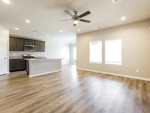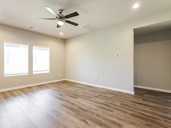 Please note, our homes are available on a first-come, first-serve basis and are not reserved until the lease is signed by all applicants and security deposits are collected. This home features Progress Smart Home - Progress Residential's smart home app, which allows you to control the home securely from any of your devices. Apply and get approved to lease this home by October 15, 2024, and receive $1,500 toward move in fees plus one month free on your first full month's rent. Want to tour on your own? Curl up with a good book on the shaded, covered backyard patio at this four-bedroom, two-bathroom rental home in Mustang, Oklahoma. The living room, kitchen, and dining room, sprinkled with recessed lighting, form an open area with beautiful flooring. Multiple windows let in the sunshine, while a lighted ceiling fan in the living room contributes a soft breeze. Pull up bar stools to the breakfast bar on the kitchen island to settle in for casual meals, or step through the door in the dining room to eat on the patio. A corner pantry and ample cabinetry ensure there's significant storage for baking and cooking gadgets. Relax in the main bedroom, featuring an en-suite bathroom with dual-vanity sinks and a walk-in closet. Arrange a time now to browse this rental home.