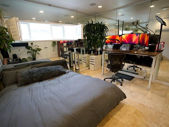 tinyurl (DOT COM) /2hrejwvp Centrally located, you'll be situated in a safe and residential neighborhood while still being only minutes away from all the hotspots in LA. This room offers a private king bedroom in a 6 shared 6 bedroom house with plug-and-play triple monitor office setup, shared indoor pool and hot tub & spacious kitchen and living room. I am offering my king bedroom starting anytime after March 19 as I will be temporarily traveling - 72-inch standing deska - Herman miller office chair - studio microphone - 65-inch HD TV - MASSIVE 3 Monitor setup and 72 inch wide standing desk available in a large 6-bedroom house located in the coveted West LA neighborhood of Century City! And the entire house comes with - in-unit washer and dryer - indoor pool and hot tub - music studio room - full outdoor gym with a squat rack and cable machine, adjustable bench, adjustable dumbbells - terrace - massive kitchen island, gas-lit stoves - AC and heating - 2 dishwashers - a 75-inch TV living room TV - a massive pantry - a ping pong table - outdoor fireplace table. tinyurl (DOT COM) /2hrejwvp