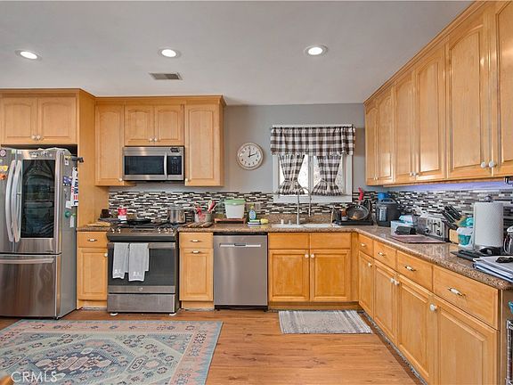 This charming single-story residence offers timeless style and comfort in the heart of Granada Hills! Stunning wood-look flooring, recessed lighting, and large windows create an inviting atmosphere throughout. The redesigned kitchen highlights modern cabinetry and sleek countertops. The primary bedroom includes an en-suite bath and generous closet space. Outdoor living is a dream with mature landscaping and multiple areas to relax. A must-see property!