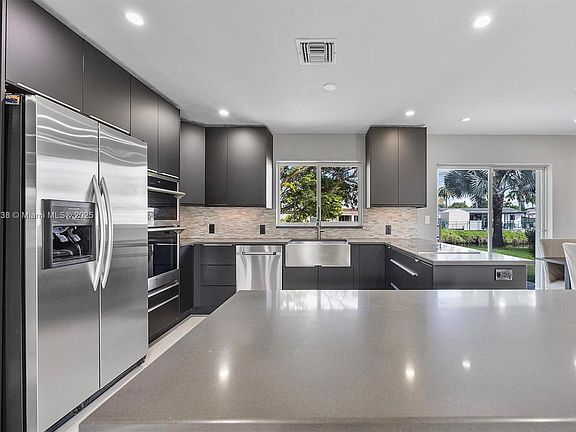 This 3-bedroom, 2-bath canal-front home offers thoughtful updates and a functional layout designed for everyday comfort. Located in a highly sought-after waterfront setting, it combines modern upgrades with relaxing views and space for a pool. A new roof (2021) and AC (2024) provide peace of mind, while the kitchen, renovated in 2019, features matte black soft-close cabinetry, quartz countertops, and quality appliances, including Samsung and KitchenAid. Grey faux wood tile floors extend through the main living areas, with laminate and terrazzo in the bedrooms. Additional highlights include recessed LED lighting, an impact front door, and surround sound speakers in the living room. The home also includes a paved driveway, updated PVC plumbing (2018), and a welcoming backyard.