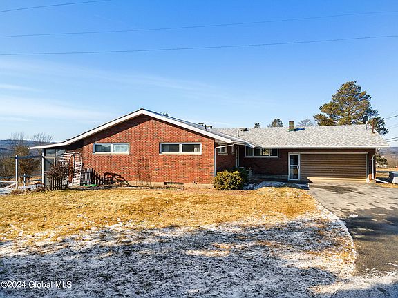 Well-maintained, one owner, 1700sqft 3-bed, 1.5-bath executive brick Ranch on over 4 acres in beautiful Duanesburg, offering the best of country living & convenient local amenities. This home features 2 sunrooms overlooking a spectacular view of the Helderberg Mtns & deck leading to a large, open backyard; spacious living room w/ floor-to-ceiling stone gas fireplace, a breakfast nook just off the updated kitchen, formal dining room, full bath w/ walk-in shower & primary bedroom w/ half bath & cedar lined walk-in closet. Finished daylight, heated basement offering many opportunities for small business, hobbyist, workshop & more. A 32'x40' pole barn with 12ft ceilings. Quick & easy access to I-88 & I-90 to Albany, less than 1mi to Village of Esperance & just 5mins to Duanesburg High School