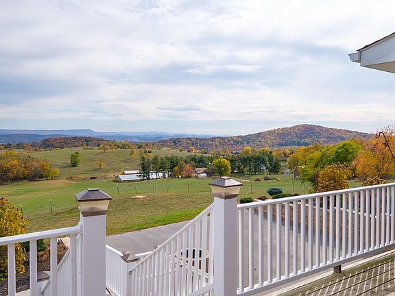 Now priced under appraisal value! Check out this immaculate, fully custom, RARE GEM that is truly made for both entertaining and everyday living. Situated atop 26+ acres of rolling hills/ fields with stunning panoramic mountain views, beautifully landscaped yard with several outdoor areas including a stretched patio with a stone firepit, a deck out back where you can watch the sunrise over the mountains and the front porch for enjoying the sunset after a long day. The heart of this home is the enormous DREAM kitchen, boasting custom hickory cabinets which include many upgraded features, quartz countertops, large center island and a large walk in pantry. Adjoining the kitchen is the spacious, warm and inviting great room with vaulted wood ceiling and solid oak floor, making it the perfect space for gathering. The oversized 2 car garage offers tons of storage or room for a workspace. The expansive, finished lower level with half bath has endless possibilities to make it your own. Home currently in land use. Come see today!