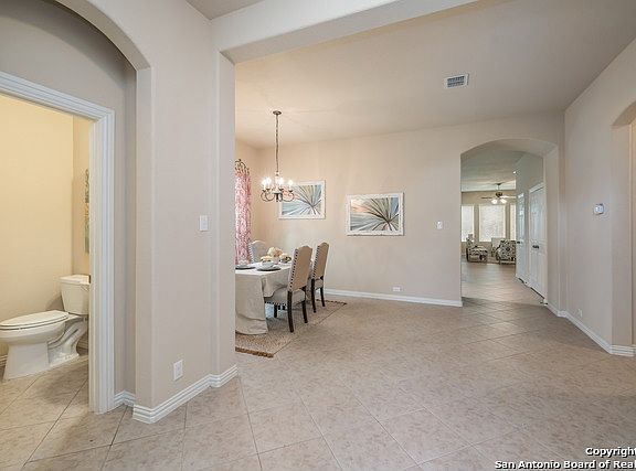 Fantastic 3 bed 2.5 bath home in Triana! Beautiful exterior with stone & brick. Custom flagstone patio with Texas inset is like no other in the neighborhood! Tile throughout main areas, French doors lead to office, and built in mudroom at entry! THREE CAR GARAGE! Granite countertops & black appliances to match! Tray ceiling & bay window in the master. Wrought iron fence in the back with a greenbelt behind! Additional landscaping and flowerbeds for even more appeal! Close to Bandera and 1604, Northside ISD!