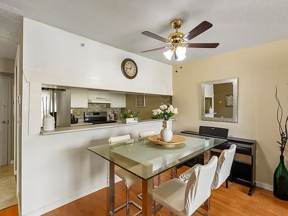 Stainless steel fridgeLaminate flooringDining topEntertainment spaceOversized windowsPrivate balconyIn-suite laundry