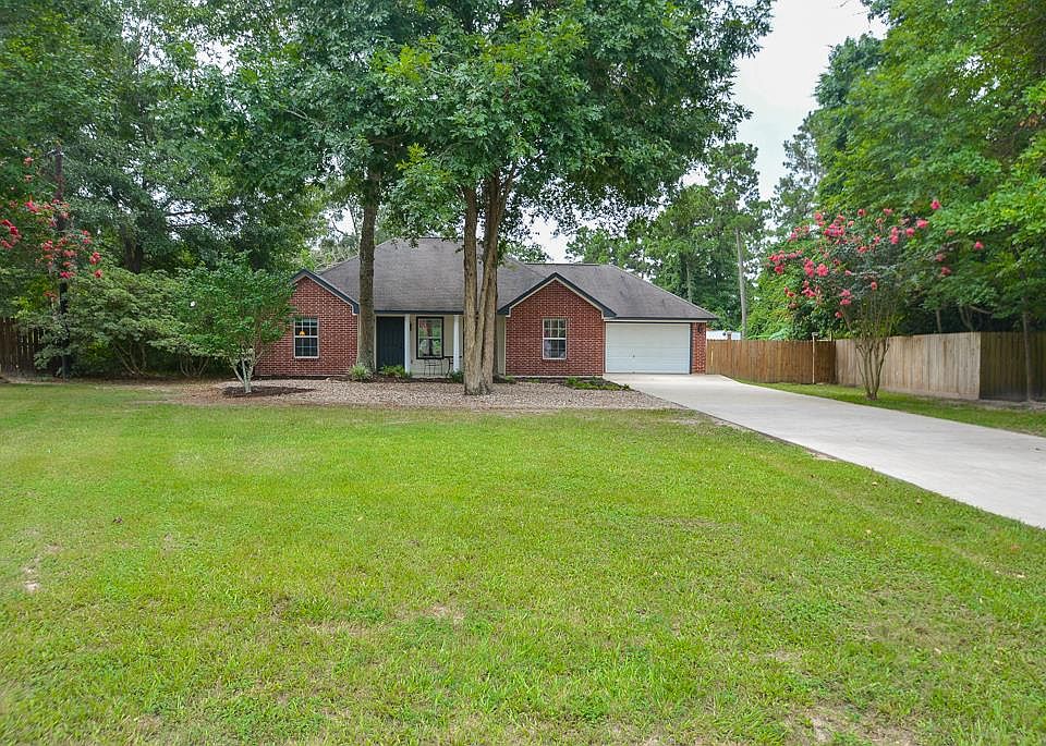 Spread out & enjoy the benefits of country living while being only minutes from The Woodlands. This 1.15-acre lot at the end of a cul-de-sac comes w/ an abundance of fruit trees, multiple 12 x 24 out buildings, spa/deck, & is cross fenced for up to 2 horses. The single story 3 bed, 2 bath offers an open concept living/dining area, recently installed carpet, fresh paint, & upgraded countertops/fixtures. Air conditioned, insulated oversize garage doubles as a workshop. HVAC is only 1 year old.