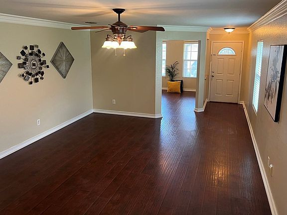 Step into comfort with rich hardwood floors that span the main living areas and hallway. The gourmet kitchen offers granite countertops, a spacious breakfast bar, and a cozy dining nook—perfect for morning coffee or evening meals. French doors off the dining area open to a private backyard retreat, complete with a covered patio ideal for relaxing or entertaining.