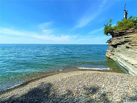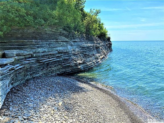 Hidden way back off the road is this exceptional lakefront property, with over 2 acres, 354 feet of waterfront, and access down to your own private cove to sunbathe, swim, kayak, or just get away. Property consists of a mix of woods, lawns, gardens, evergreens, a pond, and lots of delightful little nooks and trails. Imagine a quiet day.... collecting beach glass from your own private little beach in the morning, picnicking in a shady spot above the lake in the afternoon, watching the famous Lake Erie sunset in the evening, & being lulled to sleep by gently lapping waves at night. For a more active mood, there's boating, jet-skiing, fishing, paddleboarding. Four seasons of enjoyment. The house has a cozy, lake-house feel, with 3+ bedrooms, 2 full baths, 2 decks. The lake view from the upper deck is amazing! An adorable little guesthouse sits in its own private part of the yard. You have to experience the delights of this unique property in person!