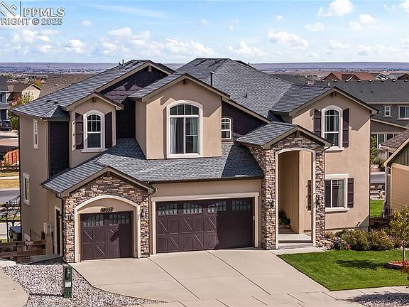 Discover exceptional living in this impressive seven-bedroom, four-bathroom home offering 4,323 square feet of thoughtfully designed space. This property presents an outstanding living opportunity with its fully finished basement featuring outdoor access, creating seamless indoor-outdoor flow and additional entertainment possibilities. The home features soaring high ceilings that enhance the sense of space and grandeur throughout. Unique colors throughout the house add character and personality, creating a distinctive atmosphere that sets this property apart. Abundant storage space ensures every belonging has its place, while the thoughtful layout accommodates both intimate family gatherings and larger celebrations. The generous lot size provides ample outdoor space for recreation, gardening, or future expansion possibilities. The finished basement extends your living area significantly, offering flexibility for recreation rooms, home offices, or guest accommodations. Location advantages abound with Meridian Ranch Elementary School just minutes away, ensuring convenient access to quality education. Residents will appreciate proximity to Falcon High School and the nearby Meridian Ranch Recreation Center, which offers community activities and fitness opportunities. Longview Park provides green space for outdoor recreation and relaxation. Golf enthusiasts will delight in the close proximity to Antler Creek Golf Course, perfect for weekend rounds or after-work practice sessions. The established neighborhood offers a sense of community while maintaining the peaceful, suburban lifestyle many families seek. This home combines practical functionality with distinctive character, creating an environment where memories are made and traditions flourish. The combination of generous space, quality construction, and prime location makes this property an exceptional opportunity for discerning buyers seeking their next chapter.