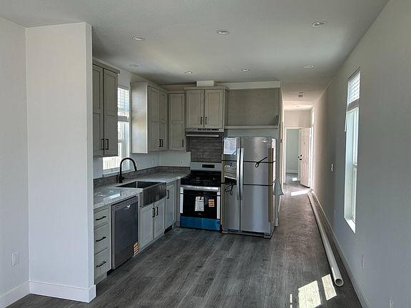 JUST DELIVERED! Beautiful 2 bed 1 bath 700 square foot home... brand spanking new at the gated Casa De Jardin gated 55+ community in Bellflower! This home comes with brand new stainless steel kitchen appliances, all vinyl flooring throughout, 9 foot ceilings, and ceiling fans installed in living room and master bedroom! Sleek and modern looking... you'll love this little home! You'll also have a brand new concrete driveway with full length awning for 3 car private off street parking... AC is included as well as a custom built storage shed painted to match the home! Anticipated to be ready for a mid September move in! FINANCING IS AVAILABLE! Call today to set up your viewing appointment and to learn how to make this home yours! All buyers must be approved for residency by park management!