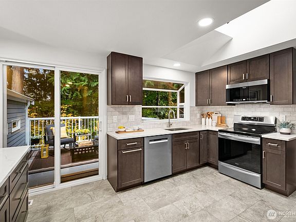 Convenience and comfortable modern living — right here on Education Hill! 3BR, 2.25 bath, flexible layout with connected spaces, bonus room & areas for work & play. Expansive sunroom and deck overlook protected greenbelt for exceptional privacy and year-round usability. Enjoy nature on large lot with fully fenced, low-maintenance yard. Refreshed, move-in ready with brand new roof, gutters, flooring, paint, updated bathrooms and kitchen, upgraded electrical and modern appliances, fast internet & central AC for elevated comfort. Quiet but central, walk to all three schools, parks & trails. Minutes to Microsoft & 520, easy access to DT Redmond & light rail. Wired for Ethernet! 2 car garage with EV charger & extra storage. Rare find, No HOA.