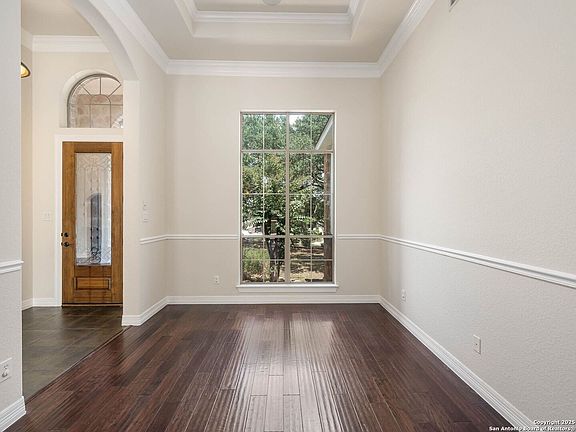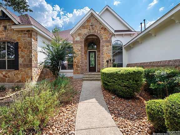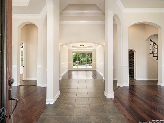 Spectacular living within Sundance Ranch, where this residence combines privacy, craftsmanship, and a seamless balance of formal and casual spaces. Thoughtful design is evident throughout with exquisite finishes, upgraded lighting, and decorator touches that elevate every room. The foyer opens to a formal dining room, study, and living area with picturesque views, while the family room showcases a stacked stone feature wall, surround sound, and abundant natural light. The chef's kitchen is appointed with stainless steel appliances, gas cooking, granite countertops, and a custom butler's pantry with wine storage. The owner's retreat is a private sanctuary with serene pool views, tray ceiling detail, and a spa-inspired bath with marble finishes. All four bedrooms are located on the first floor, allowing the home to live predominantly like a single story. Upstairs, a generous loft provides flexible living space, complemented by a game and media room complete with surround sound, a built-in bar, and marble accents. Outdoors, a stunning oasis is designed for both relaxation and entertaining. A resort-style pool with water feature, slide, and pool heater is surrounded by expansive decking, an elegant outdoor kitchen, and multiple gathering areas. Set on nearly an acre, the property offers a natural setting that enhances both privacy and livability.