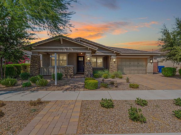 Immaculate Home in the highly sought after Eastmark Community! This beautiful home offers 5 bedrooms, 4 bathrooms, plus a spacious den! The fully upgraded kitchen is complete with stainless steel appliances, ample cabinetry, built in double ovens, gas cooktop, walk-in pantry, upgraded lighting, and beautiful granite countertops. The spacious master bedroom has two closets, a large soaking tub, and two sinks! There is upgraded tile throughout with carpet in the bedrooms. The tandem 3 car garage offers plenty of space for storage or extra vehicles! Low maintenance landscaped backyard with a spacious covered patio to enjoy those cool fall evenings. This home is truly move in ready!