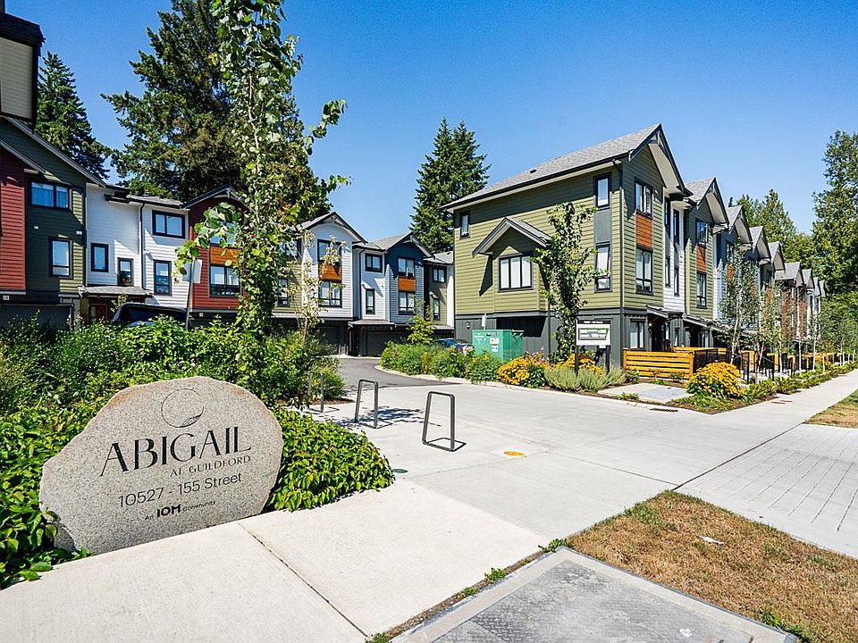 Guildford’s finest! This new 3BR 2.5BTH corner end unit boasts a private fenced backyard and upscale finishes, built by award-winning IOM. Enjoy a chef-inspired kitchen with sleek cabinetry, premium appliances & an elegant island with designer light fixtures. The primary suite offers a walk in closet, & spa-like ensuite with his & her sinks, matte black fixtures & herringbone tile. Includes double tandem garage, plus rough-in for A/C, EV charger & security. HAVAN Award finalist, steps to schools, shops, dining, transit & Hwy 1. Besides a future park & green belt. Don't miss this perfect unit! Open house Sept 13 & 14 2-4pm.