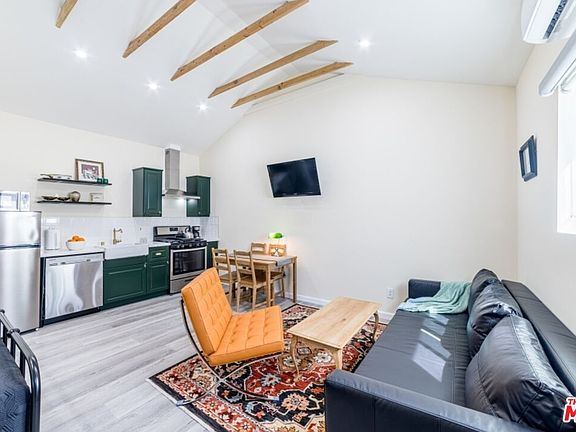 Welcome to this beautifully appointed, fully furnished studio situated in the heart of Granada Hills. Thoughtfully designed with both comfort and functionality in mind, this modern residence offers a refined living experience in a serene residential setting.The open-concept layout features a comfortable lounge area complete with a sofa, dining set, and flat-screen televisionideal for both everyday living and entertaining guests. The kitchen is fully equipped with premium stainless steel appliances, elegant green cabinetry, and generous storage space, ensuring a seamless and enjoyable cooking experience.The bathroom showcases a sophisticated, contemporary aesthetic with geometric tile accents, a glass-enclosed shower, and a sleek vanity enhanced by an illuminated mirror.The sleeping area is furnished with a comfortable bed, a mirrored wardrobe, and tasteful dcor throughout. Additional features include an efficient air conditioning system for year-round climate control and an in-unit laundry setup, providing exceptional convenience.All utilitieselectricity, gas, water, and high-speed internetare included in the rent, offering a truly effortless and stress-free living arrangement.Nestled in a quiet neighborhood, the property provides a private and tranquil environment while maintaining close proximity to shopping, dining, and major transportation routes. This residence is an exceptional option for those seeking a sophisticated and convenient lifestyle.