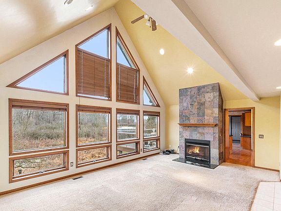 Check out a piece of paradise. This 5 bed 3.5 bath home also offers an office that can be used as a 6th nonconforming bedroom on almost 17 acres. Cozy up to the natural gas fireplace in the family room and enjoy the views or wander out to the Trex deck and have your morning coffee while listening to the sounds of nature. The kitchen features granite counters and stainless steel appliances, while the main floor master features its own deck access and en suite bath. The finished lower walkout offers a kitchenette with additional entertaining and living space. The property features woods and an adorable custom-made bridge crossing over a small creek into open areas. In addition to being very loved by it's owners, this home also has an EV car charger in the attached garage. car garage, new premium tier roof in 2024, a whole house generator, and a great outdoor entertainment space on the large patio.