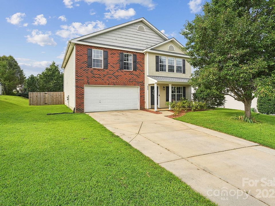 This beautifully maintained home, begging for it's next owner, is located in a highly desirable Charlotte community with a community pool. Inside, the spacious floor plan includes a separate dining room and living room, ideal for meals and entertaining. The bright and open living area flows seamlessly into the kitchen and living room, creating an inviting space for gatherings with gas fireplace. Upstairs, the large primary suite features vaulted ceiling, a walk-in closet and a private bath. Three additional bedrooms offer plenty of space for family or guests. Updates include porcelain wood looking tile throughout the first floor, kitchen has been completely renovated, all bathrooms have been completely renovated, new roof (2024), new hybrid water heater (2024), both A/C units been replaced, and a privacy fence was added. Seller is offering up to $5,000 in credit, towards new carpet and installation. This home is move-in ready and waiting for its next owners!
