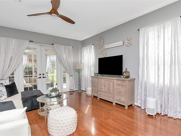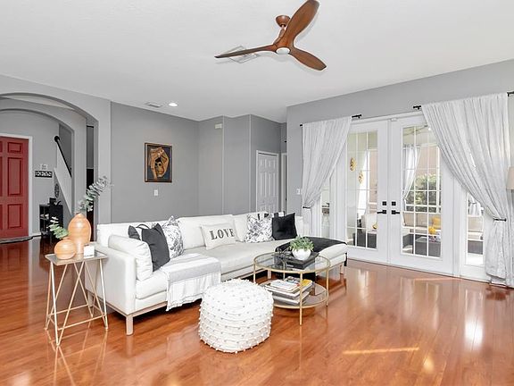 Welcome to this stunning four-bedroom, three-bath golf-front residence in the desirable gated community of Heritage Isles — a home that truly feels like stepping into a model. Every detail has been thoughtfully updated, creating a modern, move-in ready retreat that blends style, comfort, and functionality. The open floor plan features laminate flooring throughout the main living areas, offering a bright and inviting flow. The fully renovated kitchen boasts updated cabinets, granite countertops, stainless steel appliances, and a decorative stone backsplash. A sunlit dinette with bay windows provides the perfect spot for casual meals, while the spacious dining and living areas allow for gatherings. A full bathroom on the main level adds convenience for guests. Step through French doors from the family room to a spacious screened-in patio overlooking the fairway — perfect for morning coffee or evening entertaining. The generous Owner’s suite is a true retreat with bay windows, dual vanities, a free-standing soaking tub, and a separate shower. All bathrooms have been beautifully updated with modern finishes and stylish tile work. Three additional bedrooms share a well-appointed bathroom upstairs, where you’ll also find a spacious laundry room. Additional highlights include a three-car tandem garage, freshly painted interior and exterior, and gutters for enhanced curb appeal. Major systems have been recently updated — water heater (2022), one AC (2020), and a brand-new roof (2025) — giving you peace of mind for years to come. Heritage Isles Community amenities include Olympic size pool with water slide, tennis/pickleball courts, volleyball courts, basketball courts, playground, fitness center, clubhouse with restaurant, trails, and 18-hole championship golf course. The CDD fees are included with the taxes. This beautifully renovated, golf-front home is truly move-in ready and waiting for its next owner.