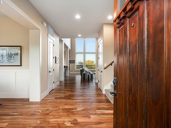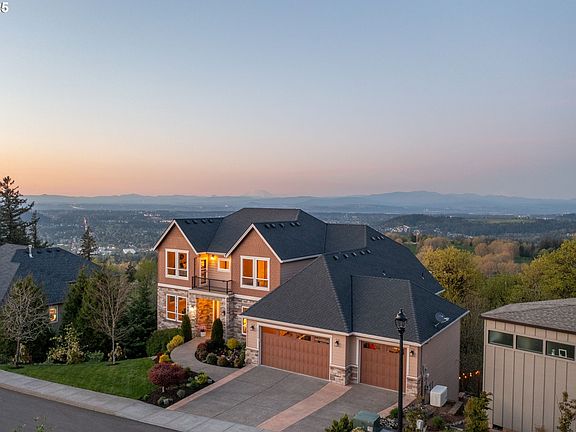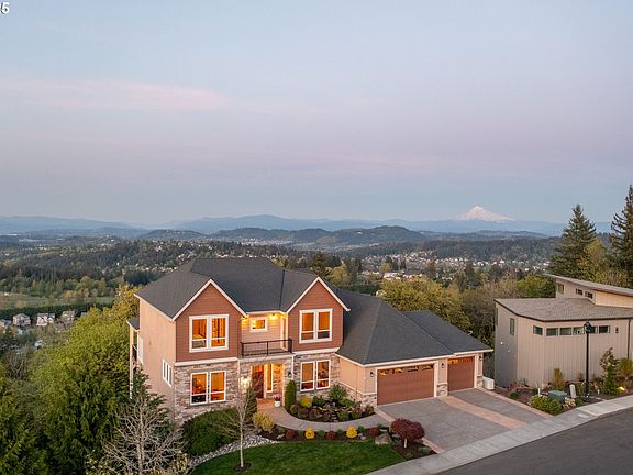 Experience refined hill-top living in this extraordinary 4,936 sq ft estate nestled in the exclusive gated enclave of Happy Valley, OR. Set across three expansive levels, this meticulously maintained residence offers sweeping, unobstructed views of Mount Hood, Adams, Helens, and Rainier—an awe-inspiring backdrop to your everyday life. Crafted for both elegance and comfort, the home boasts premium features throughout, including a Generac natural gas generator with automatic transfer, central vacuum, a whole-house Pelican water filtration system, and a state-of-the-art irrigation system. The gourmet kitchen is a chef’s dream, equipped with dual ovens and instant hot water—ideal for seamless entertaining.Step outside to a resort-caliber setting with large double decks that span the rear of the home, a private deck off the primary suite, and an intimate deck shared by the upper bedrooms. Enjoy tranquil evenings around the custom-built firepit with integrated seating, surrounded by nature and silence. The lower level features a fully equipped media room with a high-end projection screen and immersive surround sound—perfect for cinematic nights in. Here, luxury meets serenity. With minimal traffic, abundant wildlife, and absolute quiet, this is not just a home—it’s an elevated lifestyle.