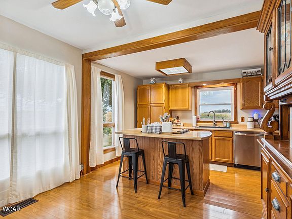 A charming farm house with modern updates. Get comfortable enjoying the new 2022 furnace and central air conditioning. While upstairs offers new electrical, lighting, and over head fans, Comfort meets convenience with main level bedroom, full bathroom, and laundry. The vast kitchen offers large windows, back patio access, and a center island equipped with all stainless steel appliances. The kitchen opens into a large laundry room with plenty of storage. There is no short supply of storage options here! With the 4 car garage and newly restructured basement the options are endless! Come and take a look for yourself.