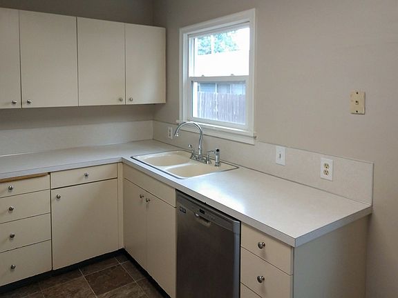 This West Salem home has easy access to Wallace Road and Highway 22. The kitchen includes a refrigerator, dishwasher, and stove/oven. Other features include an inside utility room with washer and dryer hookups next to a small office or storage area, a ceiling fan, and a fenced yard.