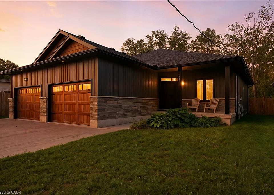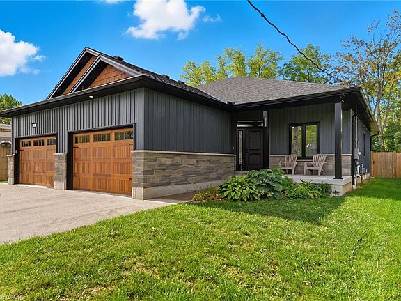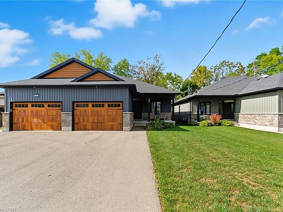 Welcome to 1053 Bay Street – A Modern Lakeside Retreat in Port Rowan, nestled in the charming lakeside community of Port Rowan, this beautifully built semi-detached bungalow offers a seamless blend of comfort and style. Boasting over 2300 sq ft of living space, this home features 2+1 bedrooms and 3 full bathrooms, making it perfect for families, downsizers, or those seeking in-law suite potential. The exterior showcases modern stone and vinyl siding, an oversized driveway with parking for four vehicles, and a cozy covered front porch—ideal for enjoying your morning coffee. Step inside to a bright, open-concept layout highlighted by 9-foot ceilings, neutral tones, and a feature fireplace that anchors the main living area. The sleek kitchen includes stainless steel appliances, crown moulding, and plenty of workspace for home chefs. The primary bedroom is a true retreat with a large walk-in closet, an extra storage closet, and a stylish 4-piece ensuite complete with a double vanity. At the front of the home, you'll find a versatile second bedroom or home office, another modern 4-piece bath, convenient main floor laundry, and interior garage access. Downstairs, the fully finished basement continues the home's elegant palette and adds fantastic functional space. Enjoy a large rec room with egress windows and a rough-in for a wet bar or kitchenette, a spacious third bedroom, and a full bath—ideal for guests or potential in-law accommodations. Outside, the fully fenced backyard includes a beautiful, covered deck—perfect for relaxing and entertaining through the warmer months. Located just minutes from Lake Erie, Long Point, and all the natural beauty the area has to offer, this home is a must-see! Don’t miss your chance to own a piece of Port Rowan paradise.