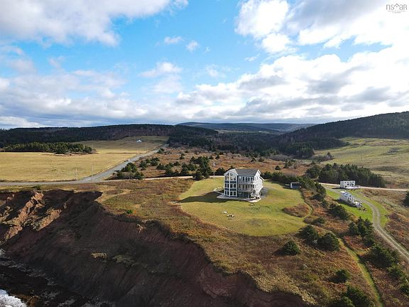 Just 10 minutes from Inverness and the world-renowned Cabot Links Golf Course, this stunning 2.85-acre property is perched atop the cliff with breathtaking views of the Northumberland Strait out to iconic Margaree Island. Built in 2019, this modern home has seen minimal use, having served as a seasonal short-term rental property. Its open-concept design and 20’+ ceilings flood the main living space with natural light, showcasing the uninterrupted ocean vistas. The main floor features 2 spacious bedrooms, 1.5 bathrooms, a convenient laundry room, and a combined living room, dining area, and kitchen are perfect for entertaining or relaxing by the sea. The upper level is dedicated to the luxurious primary suite, offering a private getaway with a walk-in closet, a spa-like ensuite featuring a walk-in shower and soaker tub, and access to two private decks. One overlooks the water, while the other offers sweeping views of the rolling hills. The walkout basement, fully above grade, adds versatility to the home. It includes a large sitting room, two additional oversized bedrooms, and a full bathroom, making it ideal for guests or extended family stays. Modern conveniences abound, with two 200-amp panels, central heating and cooling, a full water filtration system, and new appliances. Sold fully furnished, this property is truly turnkey – whether you're looking for a full-time residence, a summer getaway, or an income-generating rental. Opportunities like this, so close to world-class golfing and the vibrant Inverness community, are rare. There is lots of potential rental income to be made here! Don’t miss the chance to own your slice of coastal paradise.