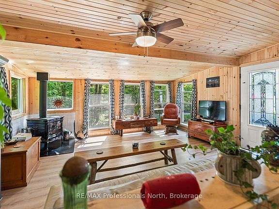Tucked just a short walk from the shores of Three Mile Lake, this well-maintained property offers a mix of comfort, efficiency, and easy lake access all on just over a quarter acre of land. Inside, you'll find warm pine ceilings, spray-foamed insulation throughout (including walls, ceiling, and crawl space), and a 200 amp panel plus a new hydro stack for peace of mind. The windows, door, and vinyl siding were updated in 2020, while the roof was redone in 2019 . Theres also a GenerLink hookup for backup power and an electric heater in the crawl space to keep things protected year-round. Water supply includes a drilled well (360 ft Deep). The septic is located at the back of the property, and garbage pickup is available in summer, with winter drop-off at the start of Cutler Rd .Outdoors, you'll enjoy the fire pit, two storage sheds, a woodshed, and a lovely trench underway for a future waterfall feature. While the hot tub is excluded, it's worth noting that its already hardwired in. A yearly road fee of $350 (2025) covers access to this peaceful spot, just steps away from the public road allowance to the lake your launch point for swims, paddles, or sunsets. Whether you're looking for a weekend getaway or a four-season retreat, this one has the essentials in place and the upgrades already done.