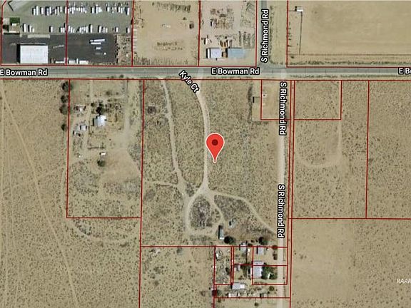 10 acres of landâEUR¦ The County has this property as a tri-plex with buildings comprising 2398 sq ft. This may have been so in 1938 when the three buildings were built. One block building is no longer standing. The other two buildings are standing. Condition is unknown. Utilities: IWVWD said water is available off Bowman/Richmond. It would cost $9931 to install a 3/4 "meter. There may an old well on the propertyâEUR¦unknown. SCE said that if a person puts a house on the south side of the property, there is an existing transformer to feed from. If they put a house on the north side of the property, a transformer will need to be installed on one of the existing poles. Either way there is existing power to the property, just one end would require a bill for the power and the other end would most likely be covered under the residential allowance. PG&E said there is natural gas available. Buyer to verify this information is correct.