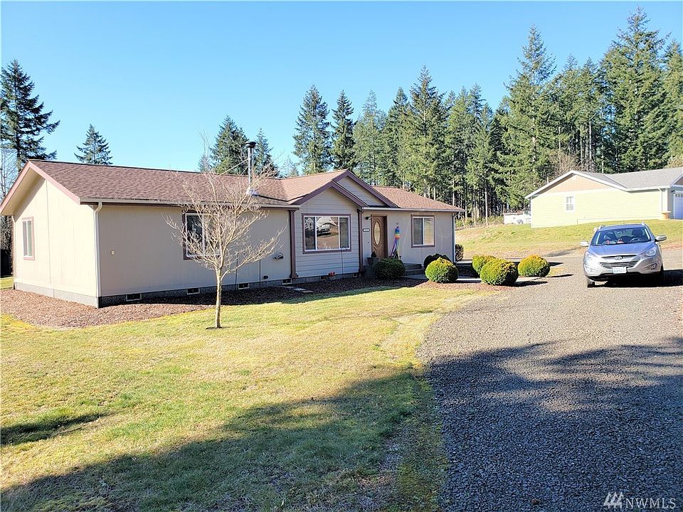 Come view this beautiful home on 1.88 level Acres. Has many upgrades including, walk-in shower, AC/Heat pump, exposed aggregate skirting & patio, easy care landscape, wood stove, hardie plank siding, huge detached garage shop and so much more. Do not miss this opportunity. Call to view today!