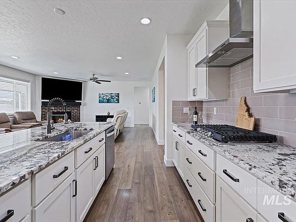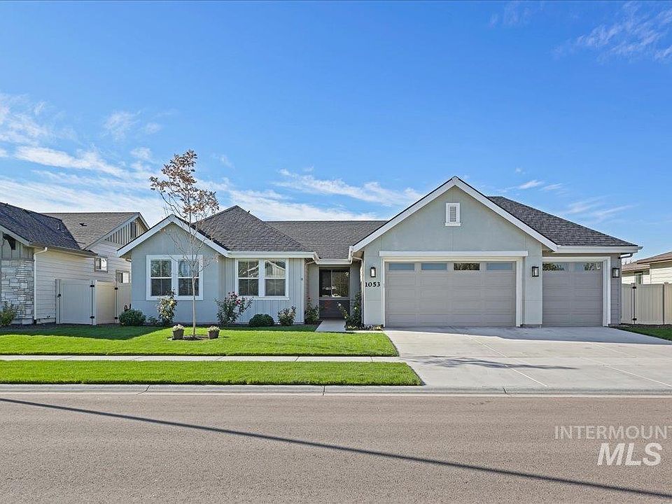 Immaculate 3 bed, 2 bath home with a 3-car garage and over $45K in premium upgrades! Enjoy an open-concept layout with a wall of windows flooding the home with natural light. The gourmet kitchen has extended counters for a coffee bar and baking. The walk in pantry is an added bonus. The spacious living area is perfect for entertaining. Step outside to a beautifully landscaped backyard with fruit trees, an extended covered patio, and a custom pergola—your private outdoor retreat. Already plumbed to add a hot tub for relaxation. Upgrades include a powered shed, water softener, storm doors, recessed lighting, outdoor LED lighting and ceiling fans throughout the house. The spacious primary suite offers comfort and privacy. Located in a quiet, well-maintained neighborhood, this move-in-ready home combines style, function, and value. Don’t miss this turnkey opportunity—schedule your showing today!