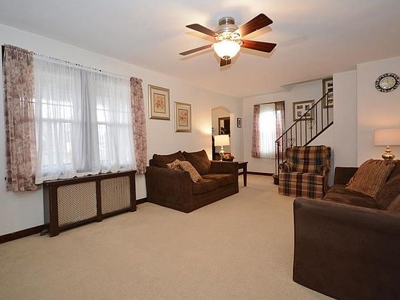 Well maintained 3-Bedroom, 2-Bath brick Colonial with lovely covered front porch. New sidewalk, gutters and downspouts, and updated driveway and windows. Living room has fireplace and built-ins. Formal Dining room. Equipped kitchen. All bedrooms on upper level. Bi-level rear deck leads to the flat rear yard where storage shed remains. Home warranty.