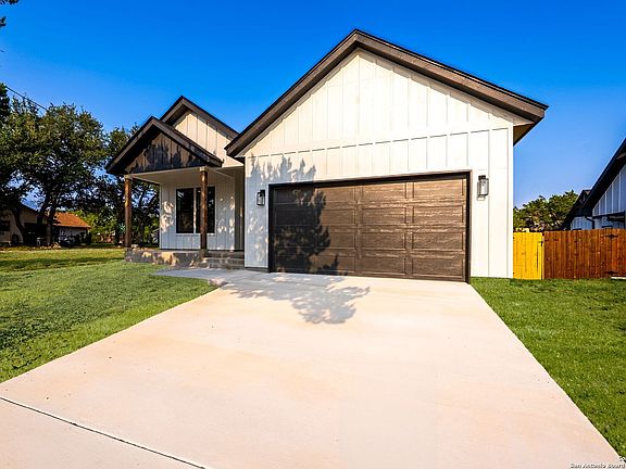 Step inside this newly built stunner- 3 bedrooms, 2.5 baths, with soaring 10 foot ceilings that make every room feel grand. Packed with upscale details, the master suite steals the show with a sliding barn door leading to a spa-worthy bath: double sinks, luxury tile, a seamless walk-in shower with a sleek frameless glass door, a soaking tub for ultimate relaxation and a large walk-in closet. The kitchen is a chef's dream with quartz counters and waterfall island, bold accent cabinetry with distinctive black hardware. Quality craftsmanship is evident with luxury vinyl plank flooring throughout, massive windows flood the space with natural light, and when the nights turn chilly, that fireplace is ready for its close-up. A highly energy efficient home featuring 6" wide exterior walls, with spray foam insulation throughout the entire home and attic. EV-ready plug accessible in the spacious two car garage. Residents of this community enjoy direct access to boat ramp 11 for Canyon Lake, a community pool with a community center, fishing pond, and a pickle ball court. Easy access hwy 281 making it a short distance to San Antonio, Canyon Lake, New Braunfels, and Boerne. Truly a muste see in person. Comes with the standard 1/2/10yr Builder's Warranty.