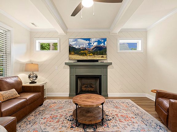 Step inside this stunning home and be greeted by a warm and inviting living room featuring a shiplap accent wall, cozy gas fireplace, custom craftsman-style windows, and striking wood beams that add character and charm. The rocking chair front porch and gleaming wood floors set the tone for the beauty throughout.    The gourmet kitchen is a chef's dream with granite countertops, a spacious island, upgraded cabinetry with crown molding, under-cabinet lighting, subway tile backsplash, and a gas range. A separate dining room with elegant wainscoting seamlessly connects to the living spaces—perfect for entertaining.    The first-floor owner's suite offers a luxurious retreat with a spa-like bath including dual granite vanities, an oversized tiled walk-in shower, and a custom closet with wood shelving. A mudroom with built-in cubbies provides convenient organization and storage.    Enjoy the outdoors from the screened-in porch overlooking a private, wooded backdrop. Upstairs, a versatile bonus room with built-in bookcases offers additional living space, while guest bedrooms feature walk-in closets and updated baths with tiled floors and modern vanities.