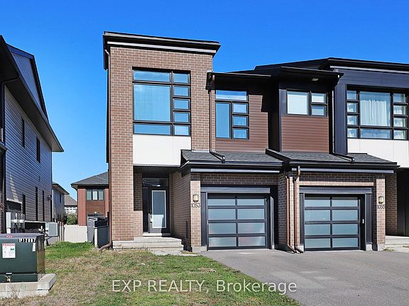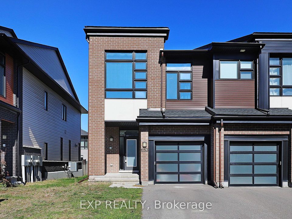Welcome to 1053 Lunar Glow Crescent - a beautifully updated 2020 Urbandale end-unit townhouse that perfectly blends modern design, functional space, and family-friendly comfort in the heart of sought-after Riverside South. Step inside to discover a bright, open-concept main floor featuring upgraded finishes throughout, including elegant flooring, designer lighting, and large windows that flood the home with natural light. The chef's kitchen impresses with stylish cabinetry, quartz counters, a large island, and stainless-steel appliances - ideal for family meals and entertaining alike. Upstairs, you'll find three spacious bedrooms, including a serene primary suite complete with a walk-in closet and luxurious 4-piece ensuite. The additional bedrooms are generous in size and share a sleek, modern main bathroom, while the convenient second-floor laundry makes everyday living effortless.The lower level offers a large recreation space - perfect for movie nights, a home office, or a play area - along with plenty of storage and roughed in and framed bathroom. Outside, enjoy your fully fenced backyard with a storage shed and room to relax or garden, all within a quiet crescent near parks, top schools, and shopping. Built with quality and care, this move-in-ready home offers exceptional value in one of Ottawa's most desirable communities.