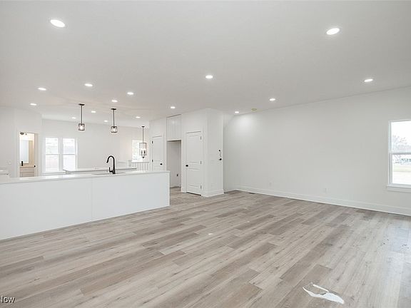 Upstairs, the second floor boasts nine-foot ceilings, an open floor plan with LVP flooring, a half bath, and a contemporary kitchen with white cabinets, soft-close drawers, and quartz countertops. Enjoy views of the front and rear yards from this level.