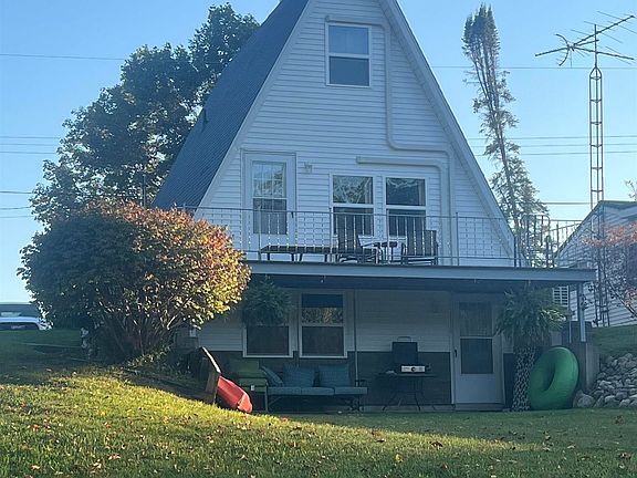 This A-Framed home is cute as a button. Not only does it offer river frontage but it also come with the dble lot across the road with a 2 car garage on it. The living room is very spacious for your lounging needs with a great view of the river. The 2 bedrooms upstairs has plenty of closet space in the hallway. Sellers are using the large space in the walk out basement for a master bedroom, which could easily be a family room or game room if you choose instead. there is lots of storage space in the basement as well. There have been many updates as well, which include newer roof (8-10 yrs) New Mini splits for heating and cooling in upper and lower levels, New gas boiler system (3 yrs), Electric panel update (1.5 yrs), New well pump and bladder tank. Come see for yourself everything thing it has to offer.