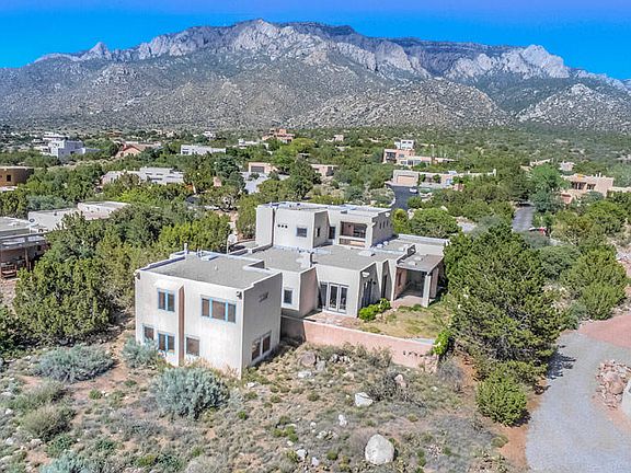 Distinctive Sandia Heights! One-of-a Kind, Two Story Custom by Park West on a Panoramic Sandia Mountain & City View Lot; Breathtaking Vistas Surround! Great Family Home; five spacious bedrooms plus a study/office plus a media/entertainment/Play room plus a children's den/play area & four baths. Sumptuous upper level Master & bath, accessed by a separate staircase, featuring a separate sitting room area & Sandia Mtn view deck & city view deck access. Elegant formal living room with a custom fireplace, gracious formal dining room, magnificent greatroom with a custom fireplace & patio access. Spacious kitchen & a 3 car, side access garage; 4 furnaces, 4 cooling units plus an entertainer's patio. Peaceful Entertainer's Haven; Perfect for Family Living! Stainless Appliances updated 8/2017