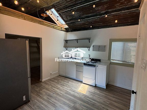 Detached backyard unit with its own private entrance and fenced outdoor space. This cozy and efficient DADU features a kitchenette with a stove and cabinet storage, a lofted area perfect for sleeping or additional storage, and in-unit washer and dryer.