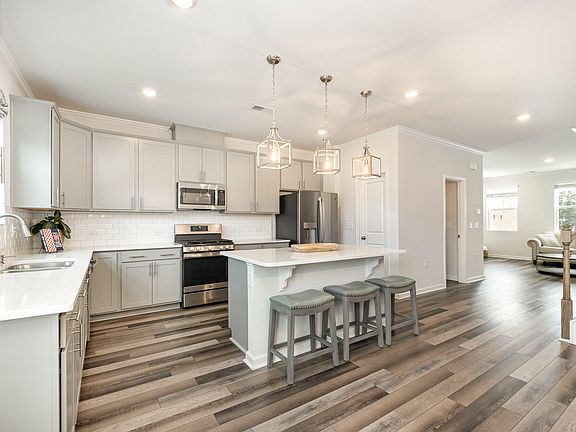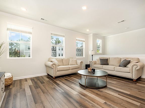 Celebrate the Holidays in your new home! Discover this impressive 4 bedroom, 3.5 bath end unit townhome with a spacious 2 car garage, perfectly located minutes from RTP, Duke University, UNC-Chapel Hill, Southpoint Mall, and the American Tobacco Trail. Enjoy the ideal balance of comfort, convenience, and upscale living in one of Durham's most desirable communities. Step inside to a light-filled, like new home with a thoughtfully designed open concept floor plan. The heart of the home is a stunning gourmet kitchen featuring an 8 foot quartz island, sleek gray cabinetry, stainless steel appliances, a gas range, and a stylish tile backsplash, perfect for hosting or everyday living. Off the dining area, a private balcony offers the perfect spot to enjoy your morning coffee or unwind with a glass of wine. Prefer grilling or outdoor dining? There's a backyard space ready for that too. A rare bonus: the entry level features a second owner's suite with a full bath and walk-in closet, perfect for guests, in laws, a home office, or flex space. Upstairs, the primary suite boasts dual vanities, a walk in tiled shower, and two generous walk in closets. Additional upgrades include wide plank flooring throughout, modern fixtures, and access to a peaceful, lakefront community with a shared dock, ideal for relaxing or reconnecting with nature. Low maintenance, high style, and move in ready, this home offers the perfect blend of modern elegance and unbeatable location.